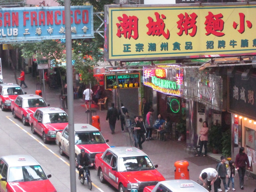 Early in the day. The girls outside the San Francisco Club still dressed.
