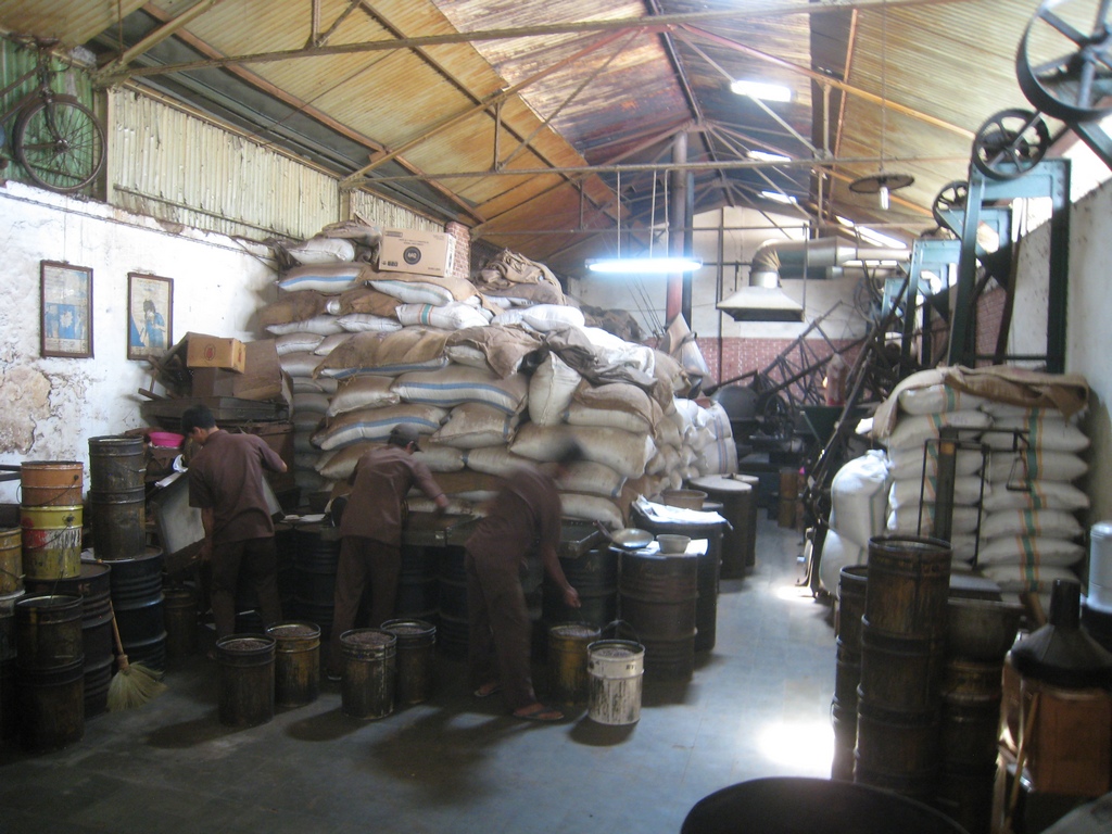 The beans for each day are checked in the these trays for quality before going to the grinding room.